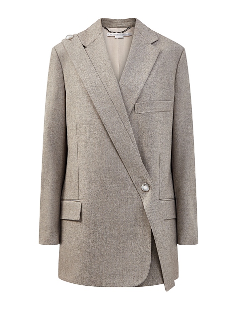 Лаконичный жакет строгого прямого кроя от Stella McCartney выполнен из плотной шерстяной фланели с бархатистым peach-эффектом. Нотку иронии в образ вносит широкая лента, которая удерживает полы изделия от распахивания в расстегнутом виде. Детали: струящаяся подкладка из органического хлопка и вискозы, выполненная вручную отделка кромок, шлицы на спинке, двубортная застежка на пуговицы .