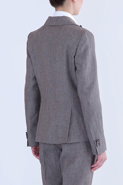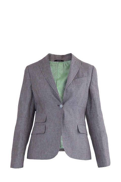 Классический однобортный жакет приталенного силуэта от Stile Latino. Модель выполнена из фактурного льна универсального цвета «тауп». Изделие с английским отложным воротником и длинными рукавами с широкими манжетами. Детали: карманы с клапанами, контрастная внутренняя подкладка для посадки по фигуре, застежка на пуговицу, шлицы на спинке. Сделано в Италии.