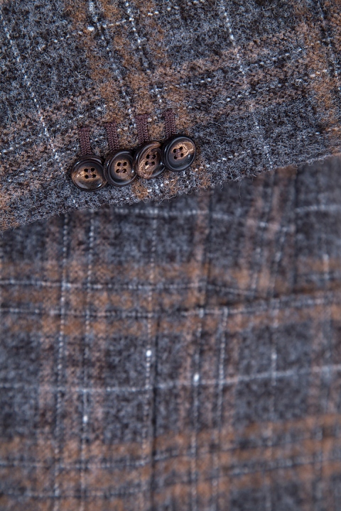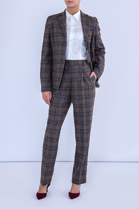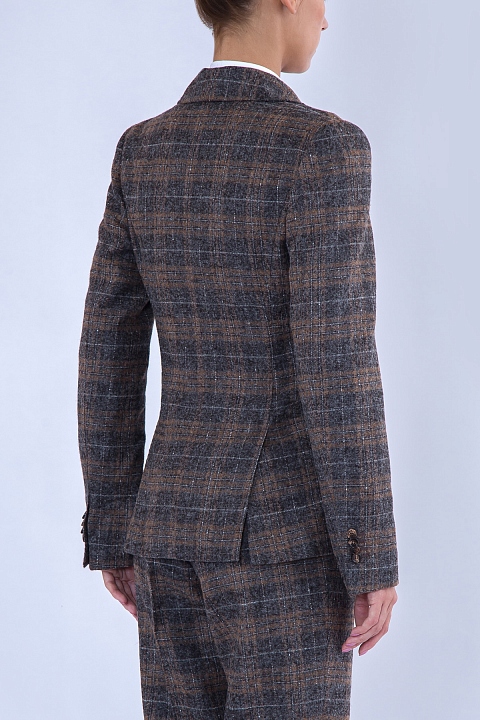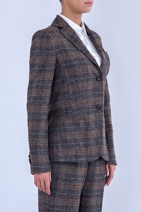 Классический жакет Stile Latino приталенного кроя. Модель со сплошной подкладкой выполнена вручную из мягкой и фактурной ткани, образованной сочетанием нитей шерсти альпаки и овечьей шерсти с повышенными показателями теплоизоляции и прочности. Изделие имеет классический клетчатый узор "Шотландка" в натуральных природных тонах. Внутри подкладка из купро. Произведено в Италии.