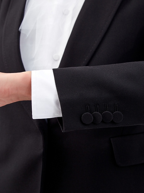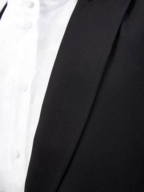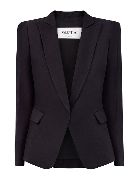 Структурированный жакет от Valentino создан из шелковой саржи с характерным диагональным переплетением волокон. Архитектурный крой изделия создает приталенный силуэт с четко очерченной линией плеч. Фигурные лацканы с выполненным вручную отделкой швов вносят штрих фирменной роскоши. Детали: полностью на подкладке из купро, пуговицы обтянуты тканью, два прорезных кармана. Сделано в Италии.