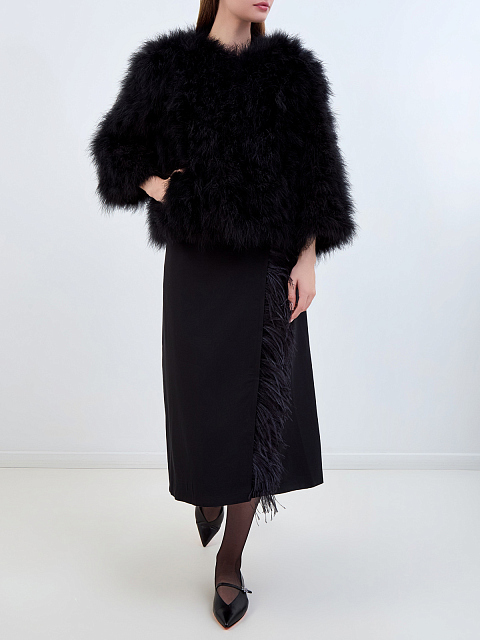 Жакет из перьев с шелковой подкладкой и рукавами 3/4