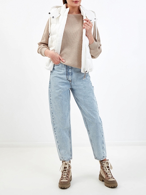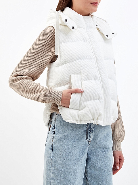 Пуховый жилет из льняного и хлопкового репса с цепочкой Мониль