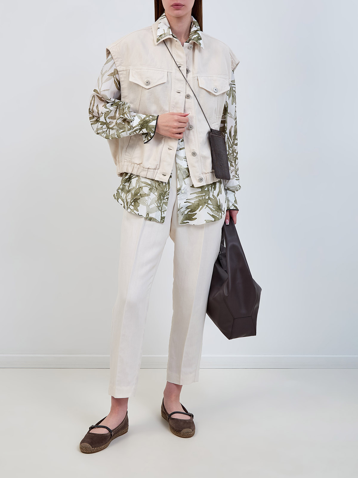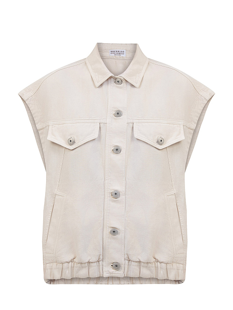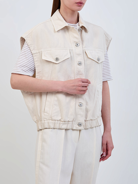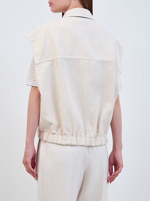Жилет из хлопкового и льняного твила с изящной цепочкой Мониль