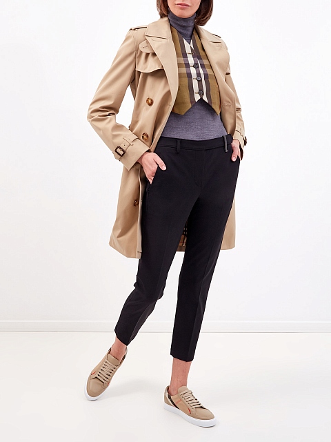 Оригинальный жилет укороченного кроя от Burberry выполнен из плотного технического хлопка. Модель с культовым принтом в клетку можно носить самостоятельно или в составе многослойного образа, спинка из гладкого жаккарда подчеркивает расслабленный стиль изделия. Однобортная застежка на пуговицы из рога буйвола завершает дизайн.