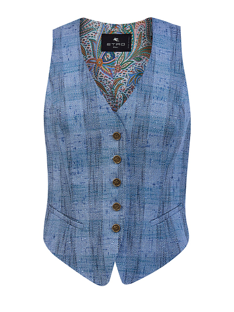 Костюмный жилет из фактурной льняной ткани в клетку