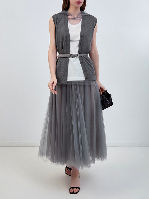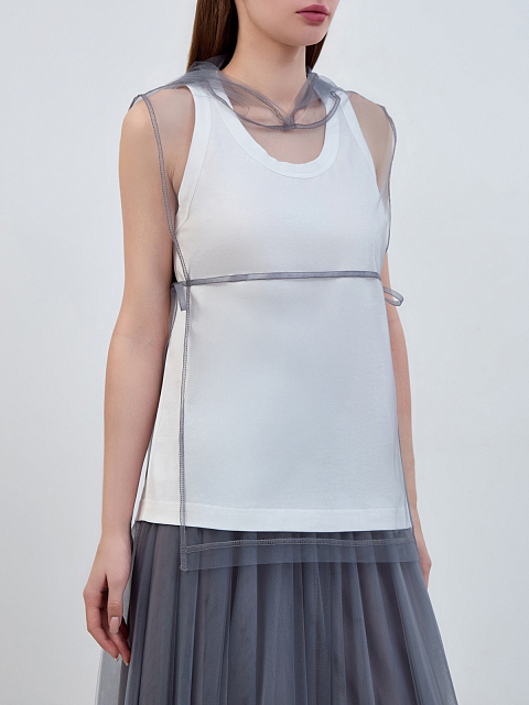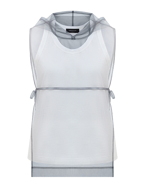 Жилет 2 в 1 из прозрачного тюля с трикотажным топом и капюшоном