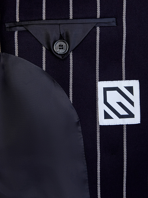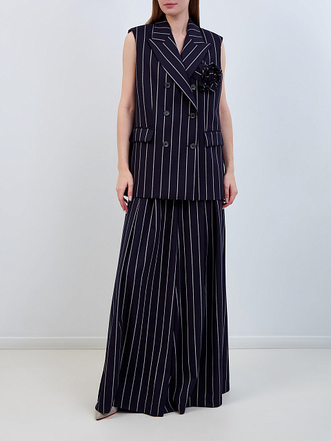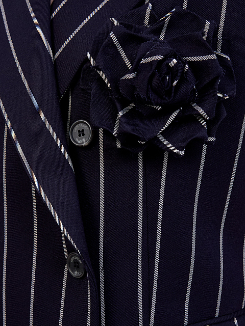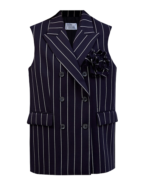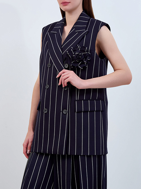 Двубортный костюмный жилет в полоску с брошью-цветком