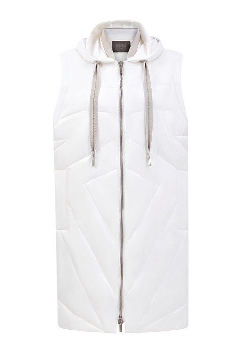 Удлиненный жилет из тафты со стеганым узором и капюшоном