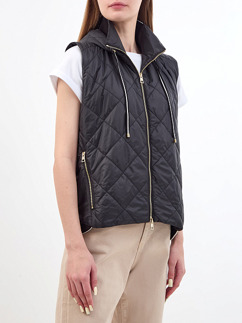 Стеганый жилет с регулируемым капюшоном и контрастной окантовкой