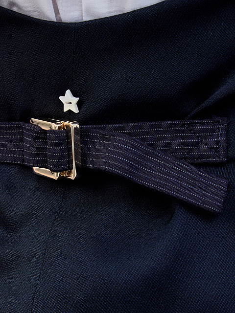 Костюмный однобортный жилет от Lorena Antoniazzi создан из тонкой итальянской шерсти в оттенке ночного неба. Эластичные волокна в составе препятствуют износу и образованию складок, ворот-халтер с заостренными лацканами подчеркивает приталенный крой. Регулируемая лента-фиксатор на спинке позволяет моделировать силуэт по желанию. Фирменный штрих — символика бренда на спинке. Сделано в Италии.