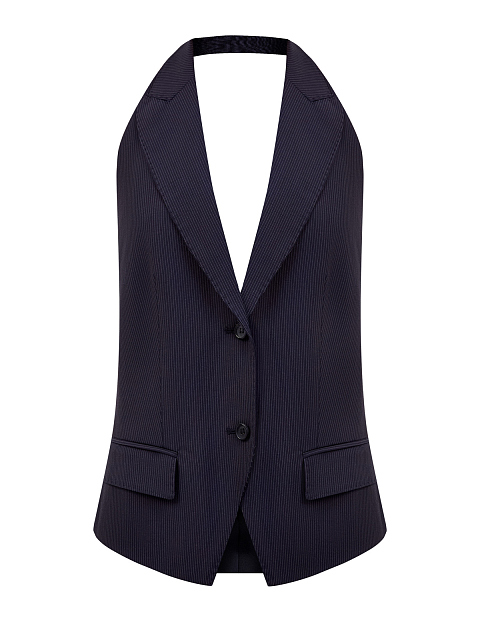 Костюмный жилет в полоску с воротом-халтер и символикой