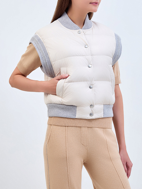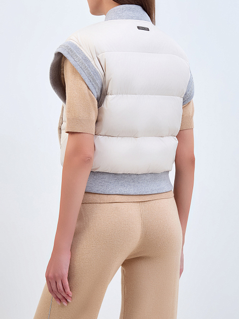 Пуховый жилет-бомбер с вязаной отделкой и цепочками Punto Luce