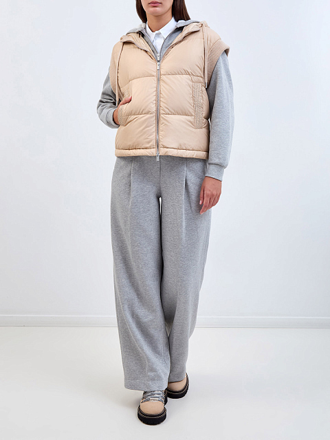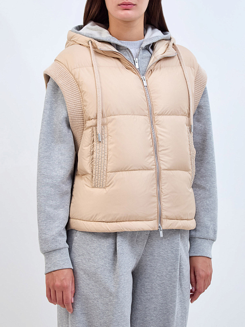 Комбинированный жилет с пуховым утеплителем и ювелирными цепочками