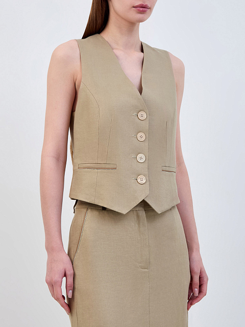 Льняной жилет с V-образным вырезом и деталью Punto Luce