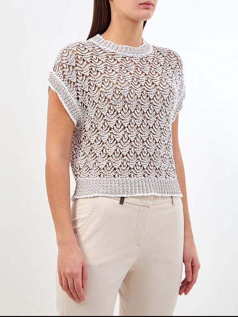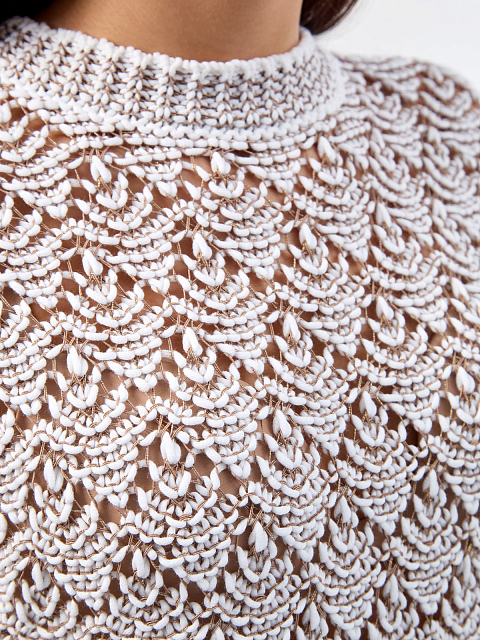 Джемпер узорной вязки из хлопка с мерцающей нитью ламе