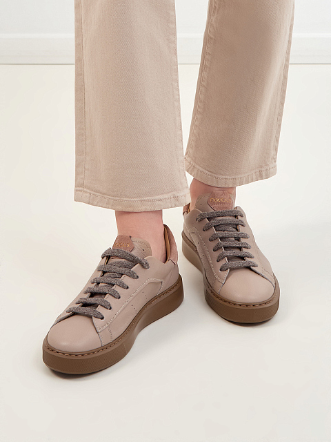 Кеды из мягкой телячьей кожи с замшевыми деталями