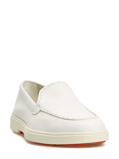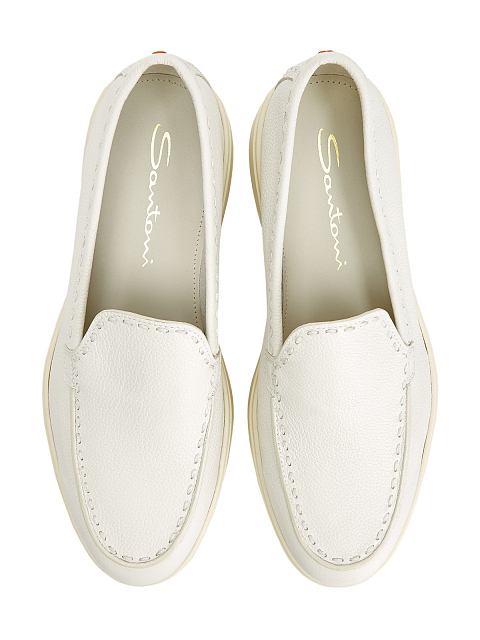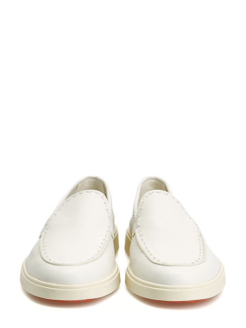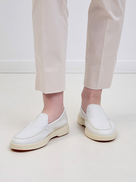 Белые лоферы из мягкой крупнозернистой кожи с прострочкой в тон