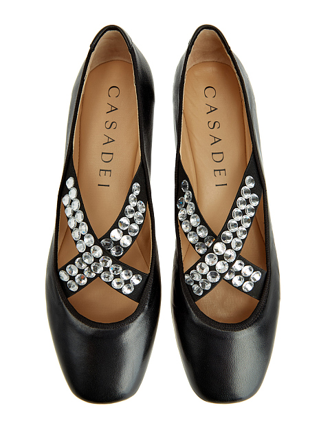 Кожаные балетки Avenue с эластичными лентами и кристаллами