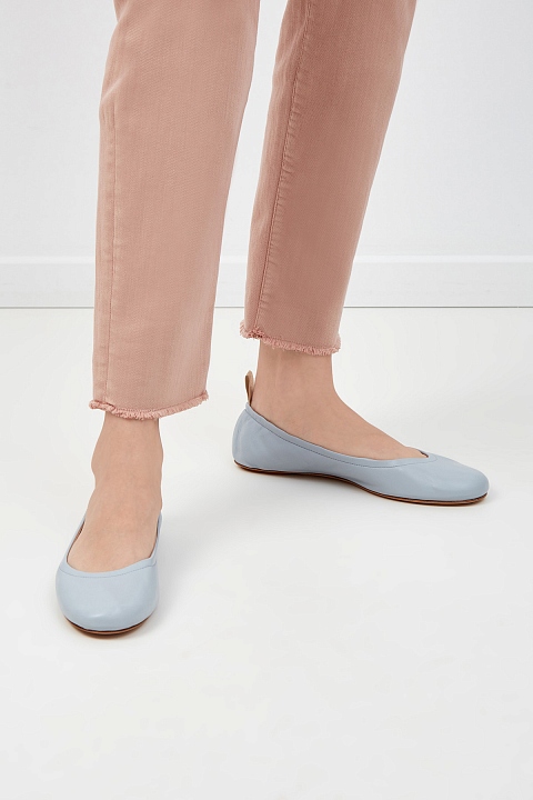 Базовые балетки от Gianvito Rossi выполнены из матовой телячьей кожи в оттенке «голубая пастель». Легкая и гибкая модель в стиле танцевальной обуви дополнена фирменной лентой, которая придает образу динамику. Комфортную посадку обеспечивает эластичная кромка. Детали: закругленный мысок, кожаная внутренняя отделка. Сделано в Италии.