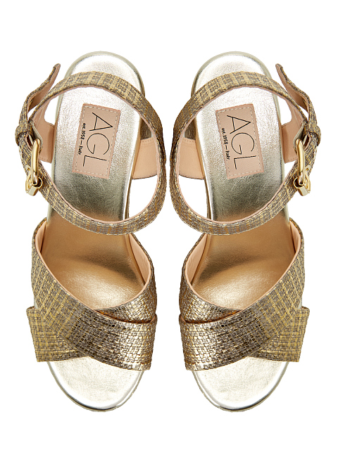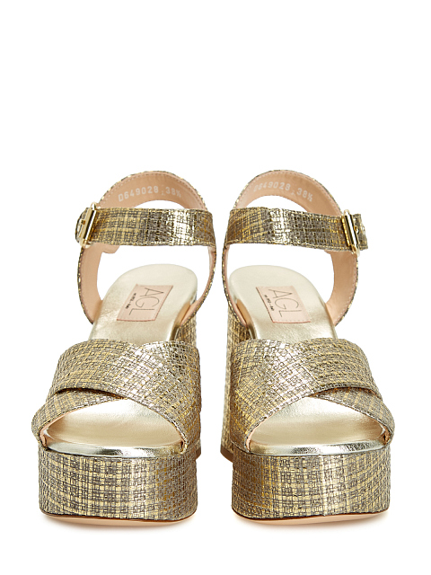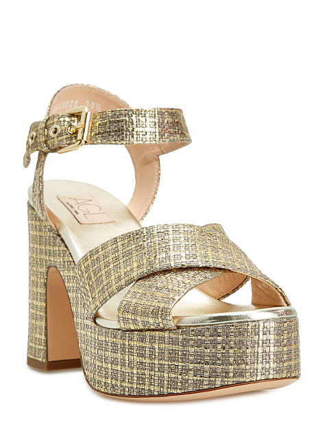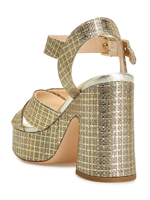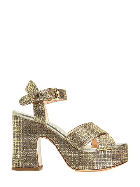 Массивные босоножки из металлизированного текстиля и кожи