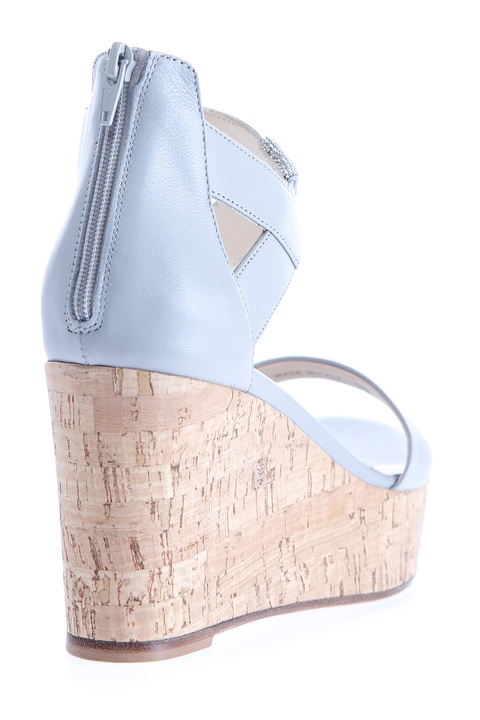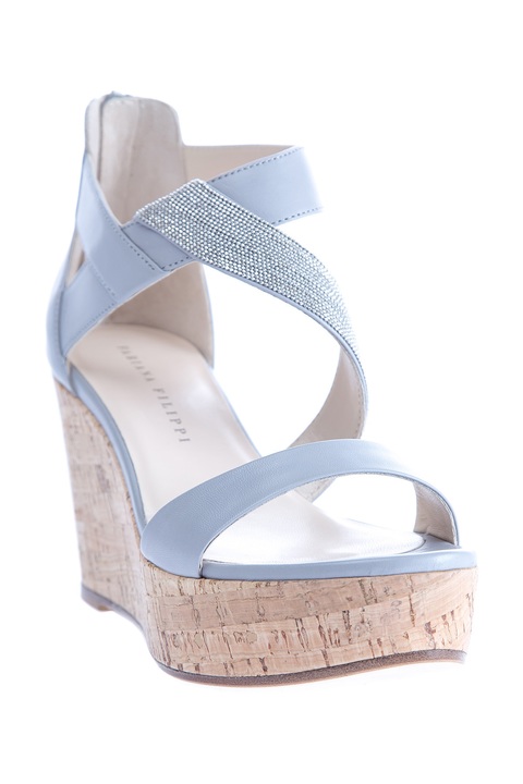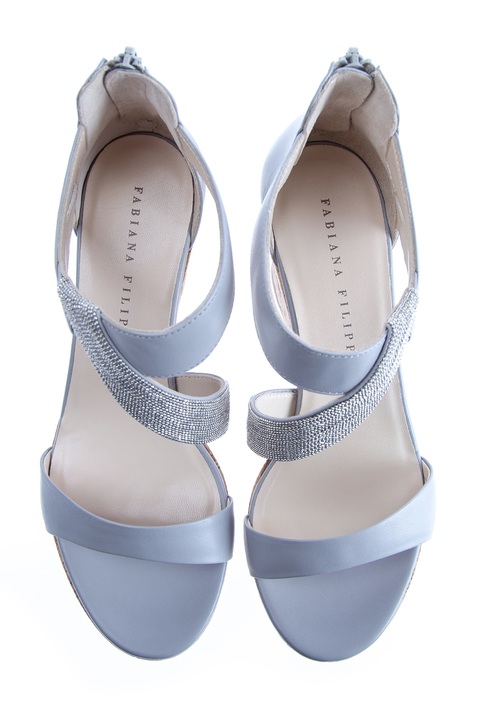 Стильные босоножки Fabiana Filippi на массивной пробковой танкетке. Модель выполнена из мягкой кожи наппа светло-серого оттенка и украшена россыпью серебристых бусин — фирменным знаком бренда. Застежка осуществляется на молнию, вшитую в задник. Высота каблука: 9 см. Сделано в Италии.