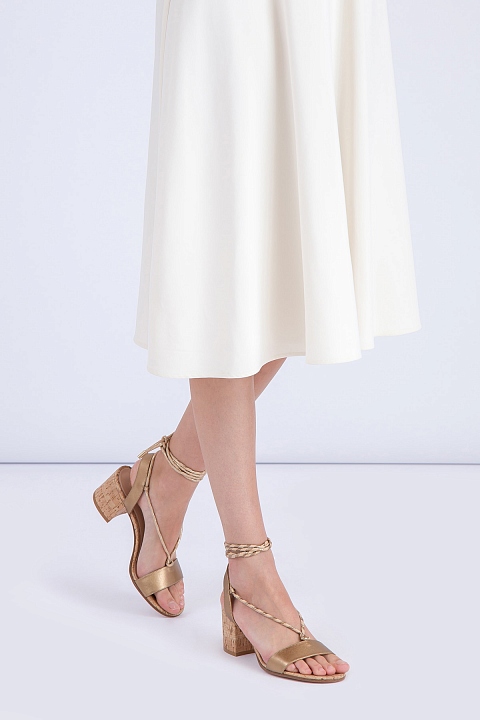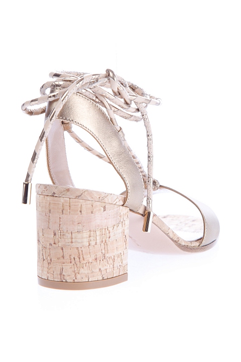 Босоножки из металлизированной кожи на пробковом каблуке