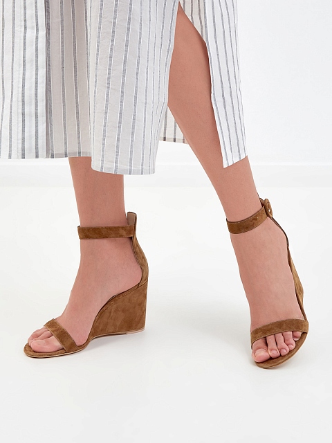 Однотонные босоножки из замши на танкетке