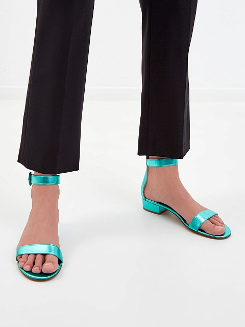 Босоножки из металлизированной кожи наппа с круглой пряжкой