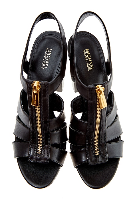 Эффектные босоножки от MICHAEL Michael Kors выполнены из матовой мелкозернистой кожи в черном цвете. Оригинальный акцент в образ вносят золотистые застежки-молнии с массивными литыми пуллерами. Детали: устойчивый наборный каблук 9.5 см, внутренняя отделка из кожи.