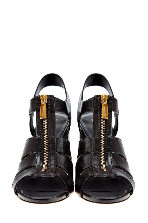 Босоножки из кожи на устойчивом каблуке с массивными молниями