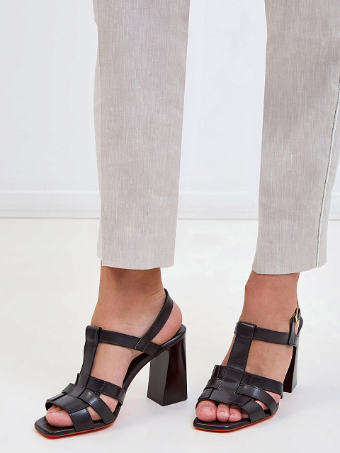 Босоножки из окрашенной вручную кожи на устойчивом каблуке