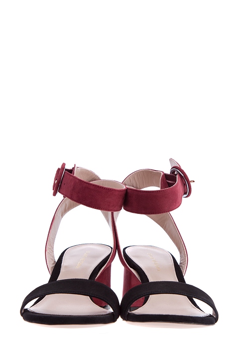 Яркие босоножки из весенне-летней коллекции Stuart Weitzman выполнены из деликатной замши. Насыщенные ягодные оттенки дополнены контрастными деталями черного тона. Модель на фигурном устойчивом каблуке высотой 6 см оснащена перекрестными регулируемыми ремешками с эластичными вставками для комфортной посадки. Сделано в Испании.