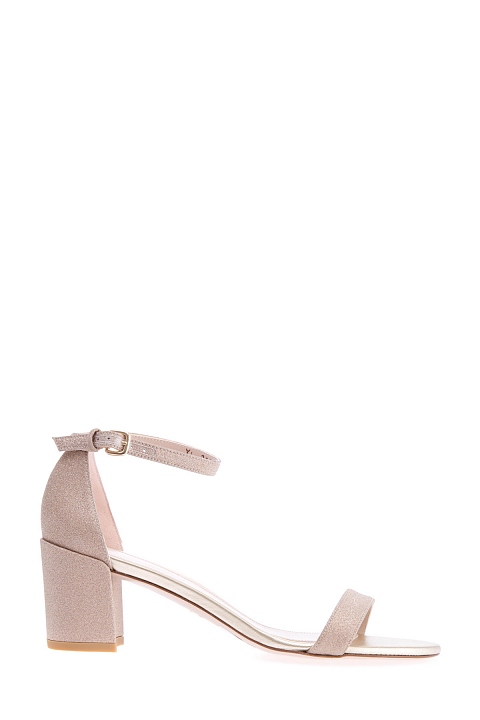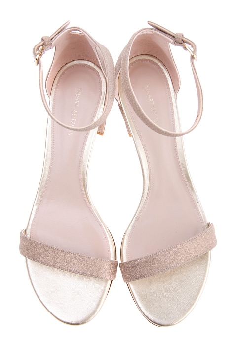 Стильные босоножки Simple из весенне-летней коллекции Stuart Weitzman созданы из мягкой кожи с фактурной сверкающей отделкой в нежном золотисто-розовом оттенке. Модель на невысоком устойчивом каблуке 6.5 см дополнена дышащей кожаной стелькой и регулирующим тонким ремешком с пряжкой и эластичной вставкой для комфорта в течение всего дня. Сделано в Испании.
