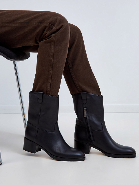 Казаки из матовой телячьей кожи на устойчивом каблуке