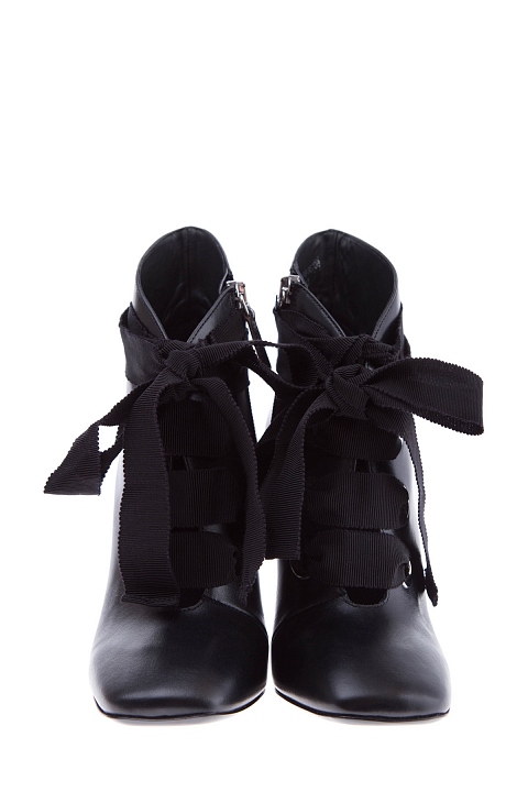 Ботильоны в стиле глэм-рок с квадратным мыском и лентой на люверсах