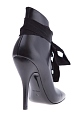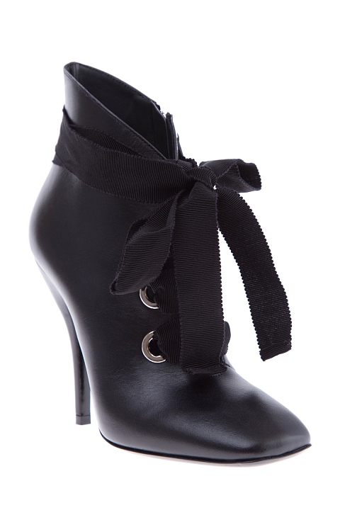 Эффектные женские высокие ботильоны в стиле рок из подиумной коллекции весна-лето 2018 от Ermanno Scervino созданы из мягкой телячьей кожи гладкой выделки в глубоком черном цвете. По-настоящему бунтарский образ создает квадратный мысок, изящная шпилька высотой 11 см придает силуэту женственность, а шнуровка из корсажной ленты в тон на металлических люверсах стального оттенка объединяет противоположные стили в единую композицию. Пара оснащена застежкой-молнией на внутренней панели, а также дополнена дышащей кожаной стелькой для большего комфорта. Сделано в Италии.