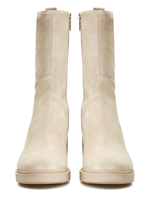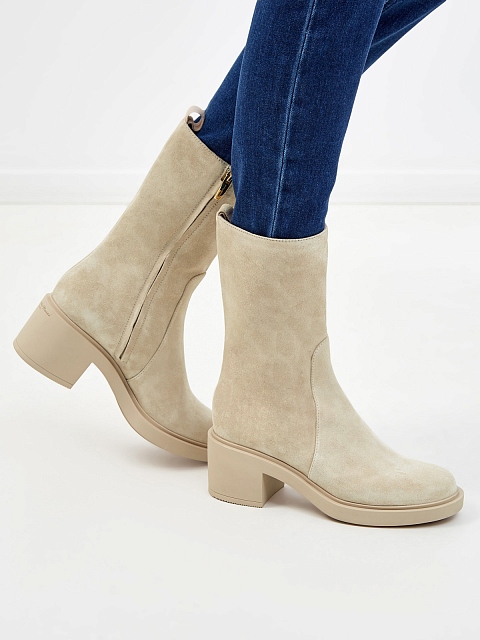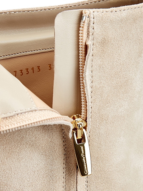 Элегантные ботильоны от Gianvito Rossi выполнены из фактурной замши в кремовом оттенке. Внутренняя подкладка из кожи обеспечивает максимальный комфорт в движении, дизайн с закругленным мыском и устойчивым каблуком делает модель актуальной для составления самых изящных образов. Детали: застежка на молнию с брендированным пуллером, петля на спинке. Сделано в Италии.
