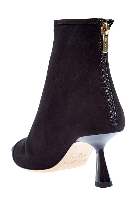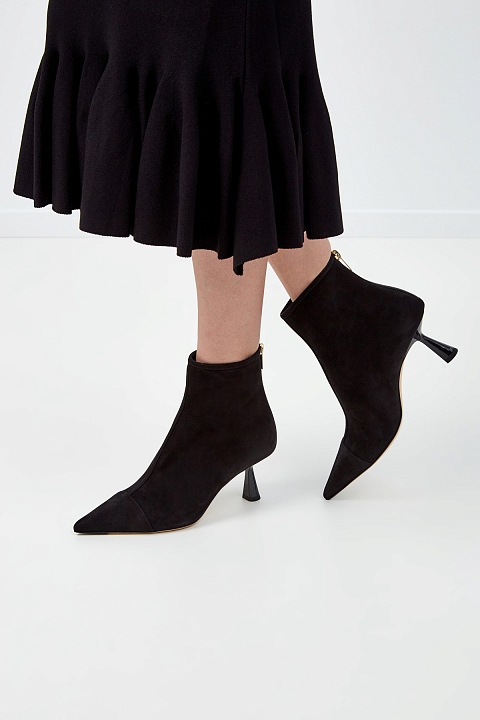 Замшевые ботильоны на глянцевом каблуке