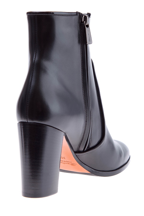 Классические ботильоны из коллекции бренда Santoni, выполненные из гибкой телячьей кожи гладкой выделки черного цвета и дополненные лаковыми вставками в тон на кромках и швах. Модель характеризуется голенищем комфортной ширины с застежкой-молнией в боковом шве и устойчивым наборным каблуком высотой 9 сантиметров. Внутреннее утепление мехом защитит от холода. Высота голенища 13 см. Сделано в Италии.