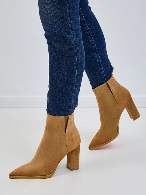 Замшевые ботильоны ручной работы с зауженным мыском