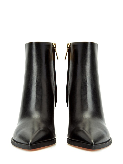 Элегантные ботильоны от Santoni выполнены вручную из гладкой полированной телячьей кожи. Модель в черном цвете станет идеальной основой для создания повседневных и деловых образов. Зауженный мысок придает образу изящность, а внутренняя кожаная отделка и устойчивый каблук обеспечивают комфорт в течение всего дня. Застежка на молнию завершает дизайн. Сделано в Италии.