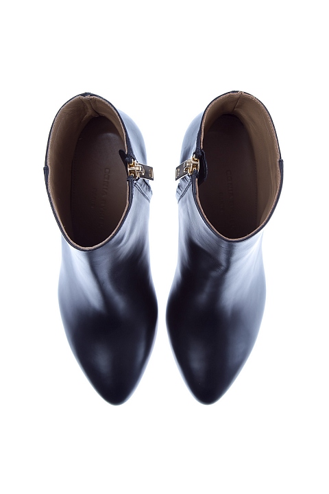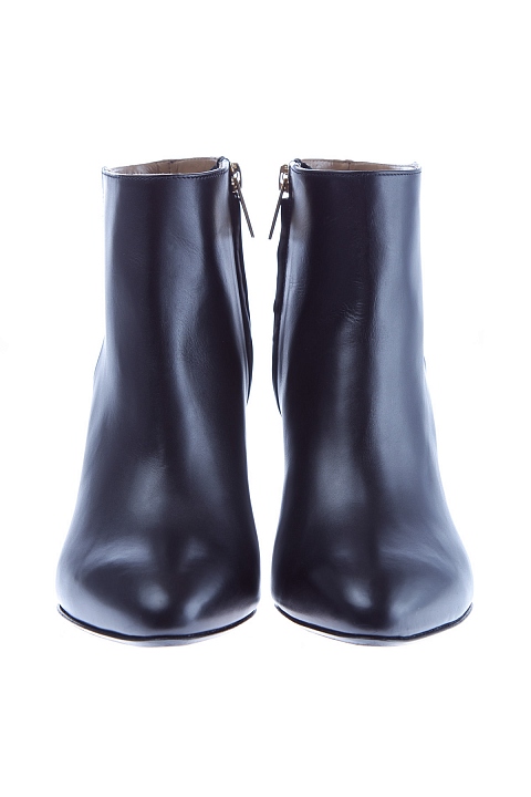 Лаконичные ботильоны от Sonia Rykiel в черном цвете из мелкозернистой кожи с легким эффектом полировки. Модель с элегантным заостренным мыском и суженным книзу устойчивым каблуком 9 см. Объемные швы по бокам придают дизайну динамику. Детали: внутренняя отделка из кожи, застежка-молния скрыта под планками.
