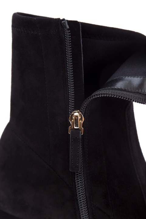Высокие ботильоны из замши с фирменными заклепками на каблуке