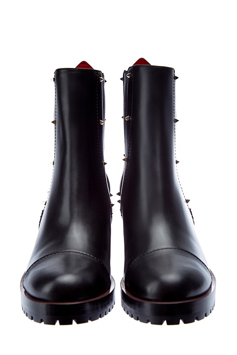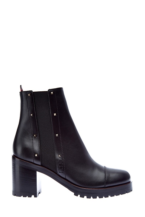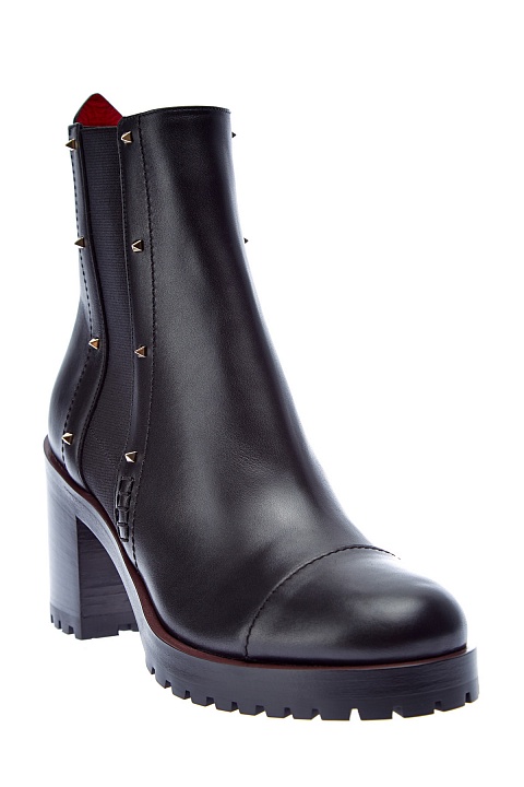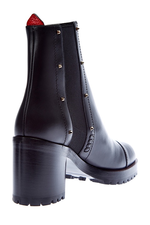Стильные ботильоны-челси от Valentino Garavani созданы из гладкой телячьей кожи. Фирменные заклепки с платиновым напылением расположены по бокам и придают образу нотку стиля глэм-рок. Массивная подошва с рифленым протектором и устойчивый каблук высотой 7 см делают модель стильным дополнением любого образа в межсезонье. Петля на спинке выполнена в фирменном оттенке Rosso. Длина стельки для размера 39.5 составляет 27 см. Сделано в Италии.