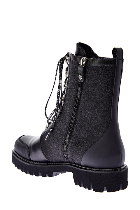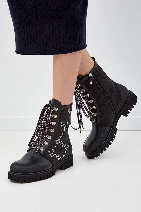 Кожаные ботинки со вставками из шерстяного драпа