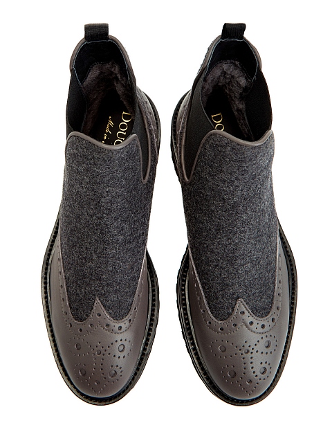 Комбинированные челси из драпа и кожи с меховой отделкой