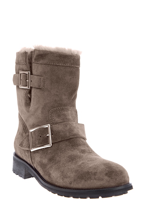 Теплые женские ботинки Youth из коллекции осень-зима от Jimmy Choo созданы из мягкой натуральной замши в мягком серо-бежевом оттенке. Модель в байкерском стиле дополнена аутентичными декоративными ремешками с фиксаторами. Внутренняя отделка из густого натурального меха в тон обеспечивает надежную защиту от низких температур, а рифленый рисунок протектора предотвращает скольжение. Изделия на небольшом устойчивом каблуке оснащены эластичными вставками в боковых панелях, благодаря которым можно быстро снимать и надевать обувь. Сделано в Италии.