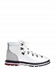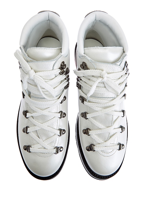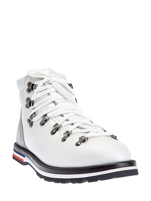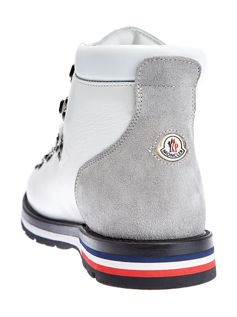 Эффектные женские ботинки Blanche в светлых тонах от Moncler из гладкой кожи и мягкой замши. Нескользящая рельефная подошва дополнена окантовкой в фирменных цветах бренда. Шнуровка на металлических петлях создана в стиле обуви для треккинга, верхняя планка с наполнителем обеспечивает дополнительный комфорт. Фетровый логотип на спинке подчеркивает динамичный дизайн.