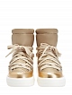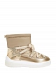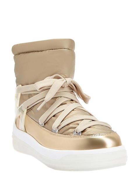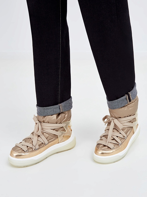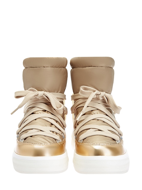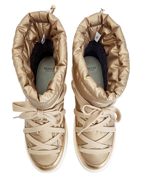 Объемные женские ботинки Insolux от Moncler выполнены в песочном оттенке с глянцевой отделкой. Модель создана из ветро- и влагозащитного нейлона laqué и дополнена деталями из кожи и графической шнуровкой. Эластичная кулиска с фиксатором обеспечивает максимальный комфорт в движении, рельефная подошва предотвращает скольжение. Логотип бренда из прозрачного полимера завершает функциональный дизайн.