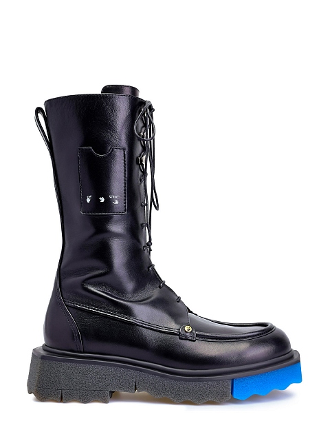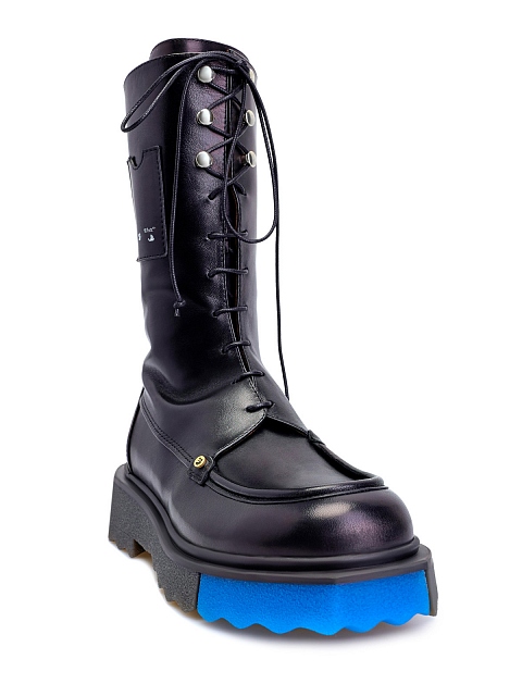 Эффектные женские ботинки от Off-White выполнены из гладкой лакированной кожи, высокая шнуровка с литыми люверсами подчеркивает неформальный стиль изделия. Цветовые акценты в образ вносят массивная протекторная подошва с яркими вставками-colorblock и контрастная внутренняя отделка из кожи. Детали: литой логотип, декоративные карманы.